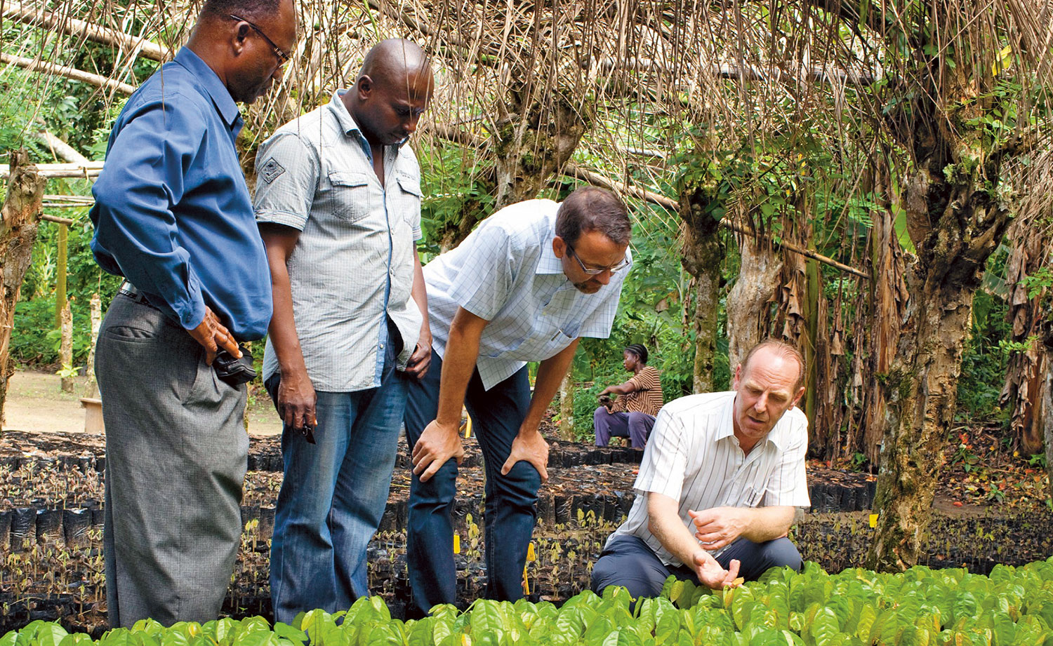 Chef achat Felix Inderbitzin (à droite) à l’institut de recherche «Cocoa Research Institute» au Ghana.